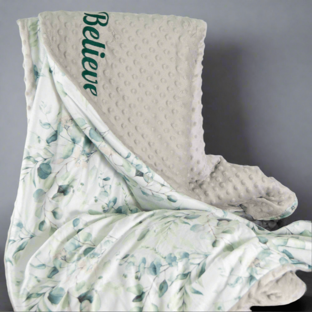 Drift into relaxation with the Eucalyptus Dreams Minky Blanket – a perfect blend of nature and comfort!