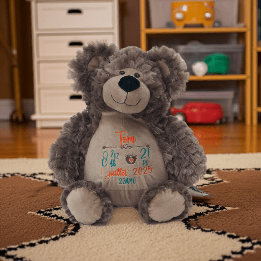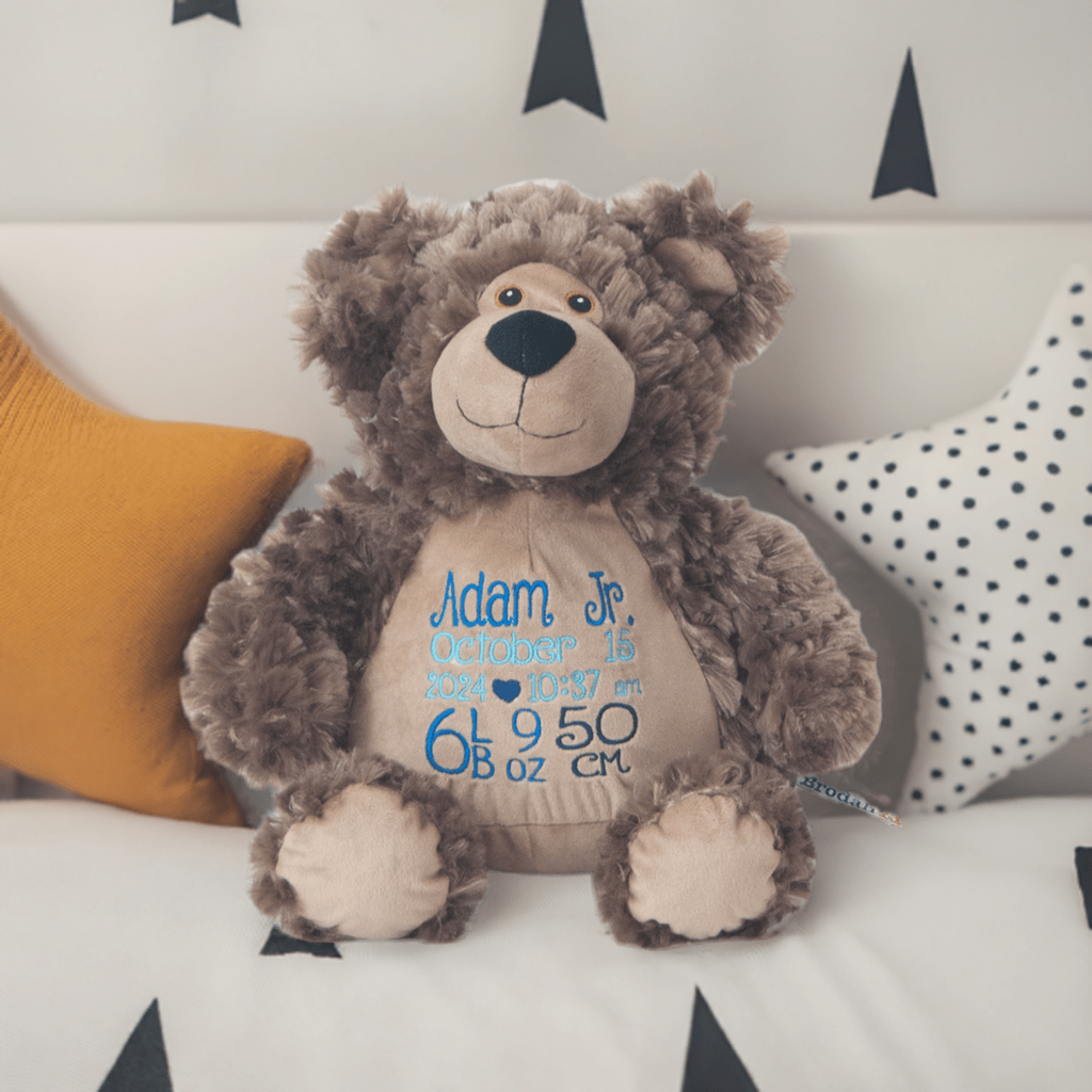 Give the gift of warmth, comfort, and personalization with this adorable brown teddy bear, made extra special with custom embroidery!