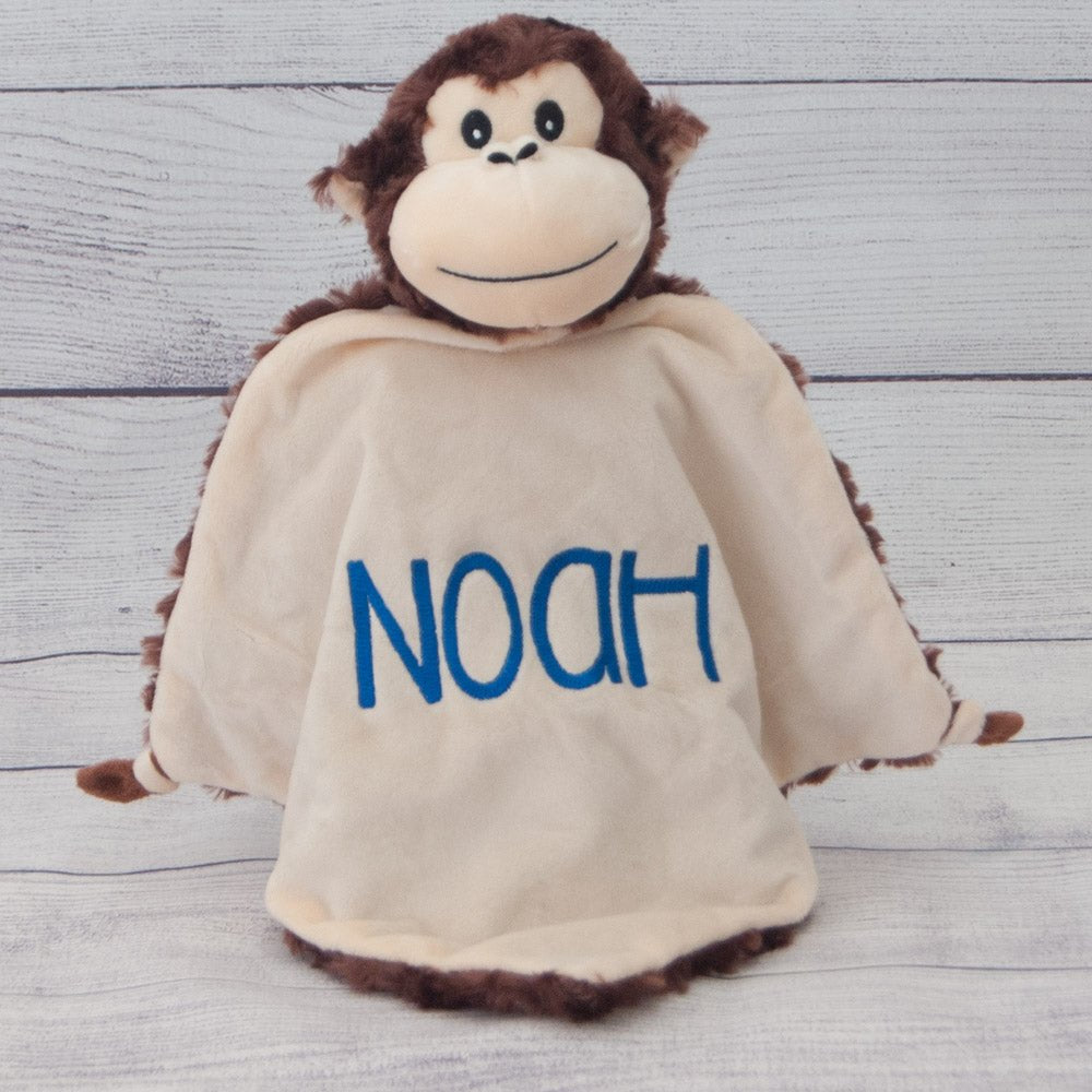 Give your little one a cuddly companion with our Personalized Monkey Lovey. Perfectly sized for tiny hands to hold and snuggle, this soft lovey features an adorable monkey head and the option to personalize it with your baby's first name. You can even upgrade it to include a full message or birth stats for an extra special touch.